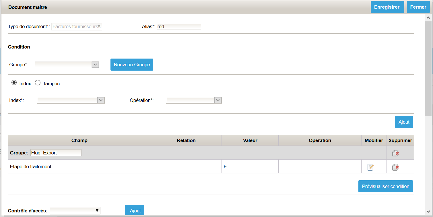 A ce stade, vous avez la possibilité de définir les conditions pour sélectionner les documents candidats à exporter.